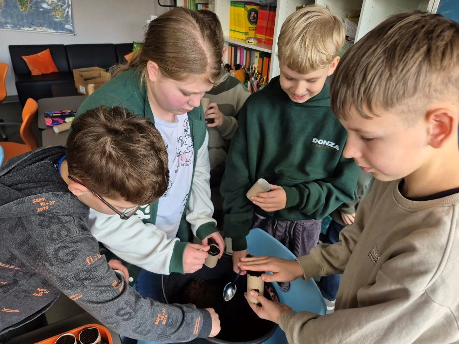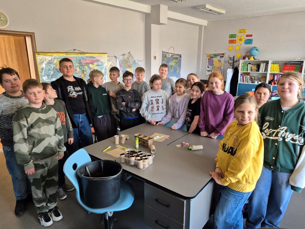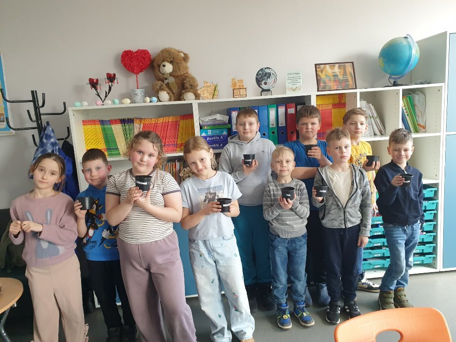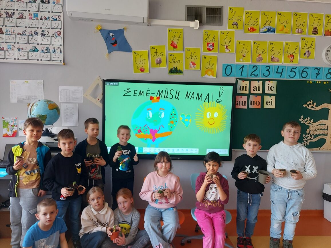 Pradinukai šią dieną pažymėjo savo dovanomis Žemei – mažais, bet prasmingais darbais: pirmokai su mokytoja Nijole Karkauskaite ir mokinio padėjėja Liuse Gecevičiene sėjo gėles – pradėjo savo rūpinimosi gamta kelią, antrokai su mokytoja Sigute Žvinakiene sėjo žolytę, puoselėdami žalią ir gyvą aplinką, 3 a klasės mokiniai su mokytoja Gina Griškoniene iš šakelių daugino dekoratyvinius karklus ir diemedį; 3 b klasės mokiniai su mokytoja Audrone Margeliene kūrė robotus ir pieštukines iš antrinių medžiagų parodydami, kad kūrybiškumas ir tvarumas gali eiti kartu. Ketvirtokai su mokytoja Rita Peckuviene iš antrinių medžiagų gamino indelius, kuriuose netrukus sės gėles.