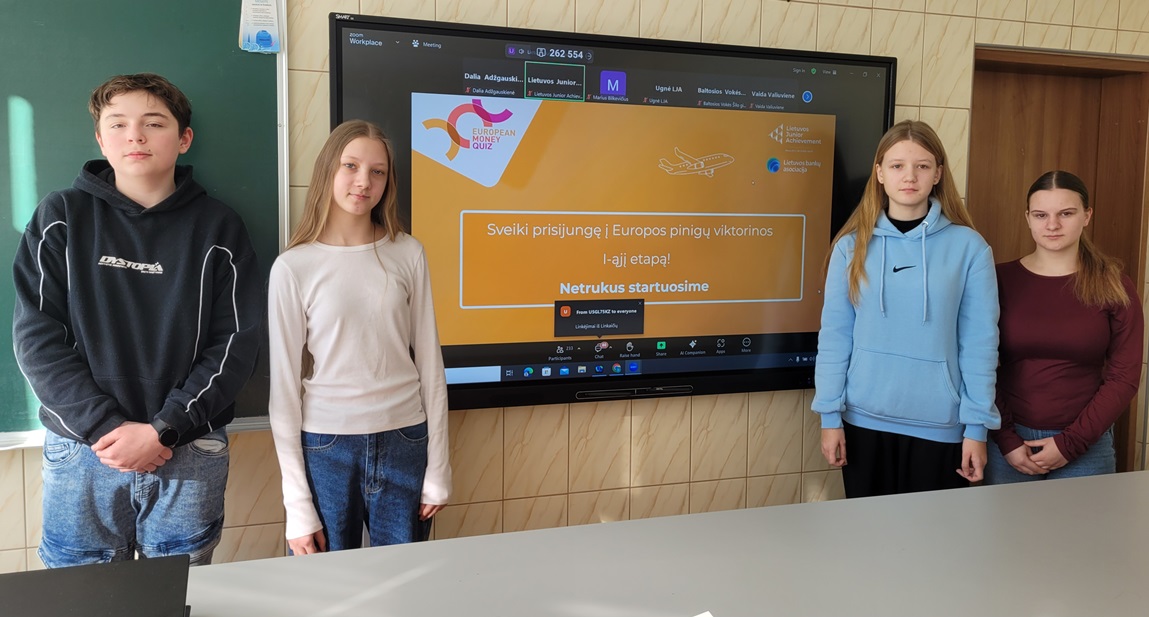 Kovo 5 d. Lietuvos Junior Achievement kartu su Lietuvos bankų asociacija organizavo Europos pinigų viktoriną 2026. Joje savo žinias ir gebėjimus išbandė mūsų gimnazijos 8 klasės mokiniai Dominykas, Dovilė, Vanesa ir Viktorija.