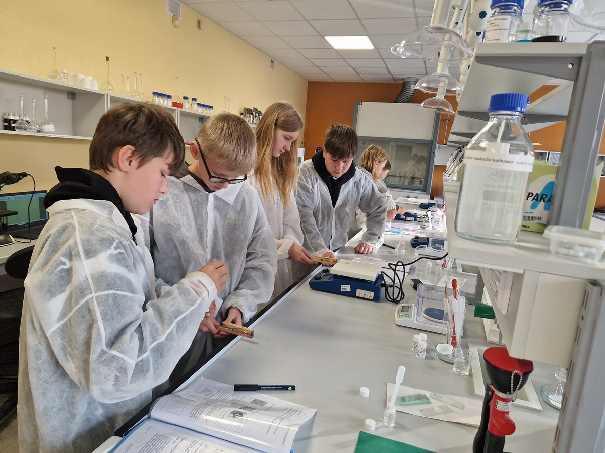 Biologijos ir chemijos laboratorijoje vyko praktinis užsiėmimas „Kristalų mikropasaulis“. Jo metu mokiniai sužinojo, kad daugelis buityje naudojamų medžiagų turi kristalinę struktūrą – tai valgomoji druska, cukrus, citrinos rūgštis. Paaiškėjo, jog kristalai gali formuotis net žmogaus organizme (pvz., kalcio oksalato kristalai) bei augalų audiniuose.