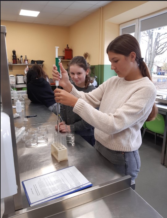 Spalio 30 dieną 7 klasės mokiniai vyko į Kauno kolegijos Alytaus STEAM prieigos centrą, kur dalyvavo įdomiuose ir kūrybiškuose užsiėmimuose „Kristalų mikropasaulis“ ir „Mikrobų detektyvai“.