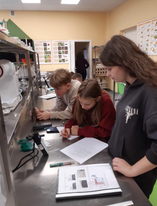 Mokiniai patys iš tirpalų augino kristalus, stebėjo juos pro mikroskopą, apibūdino jų formas. Stebėdami įvairių augalų skersinius pjūvius, septintokai pamatė drūzų, rafidžių ir kitokių formų kristalus. Šios veiklos metu mokiniai patobulino praktinius darbo su mikroskopu įgūdžius, pagilino biologijos žinias ir iš arčiau pažvelgė į mus supantį mikropasaulį.