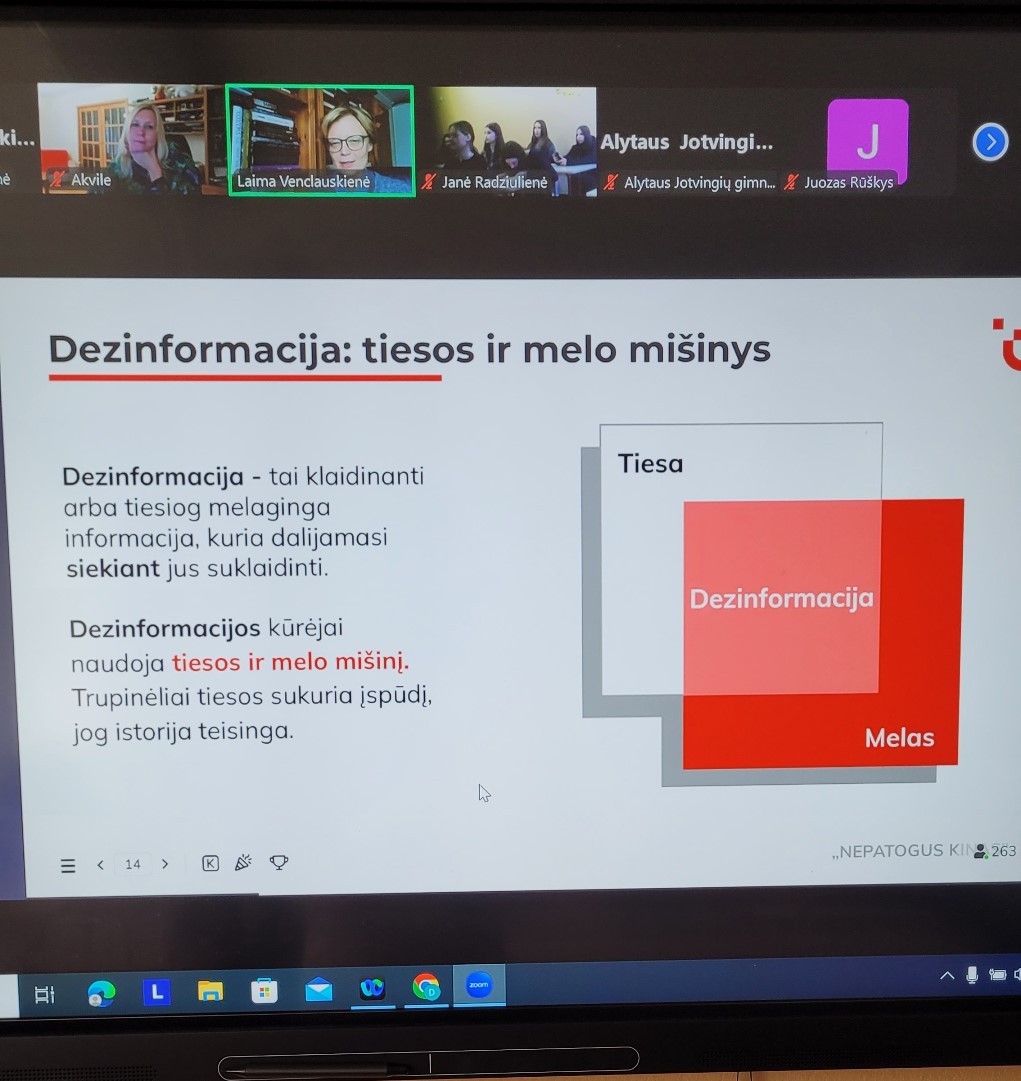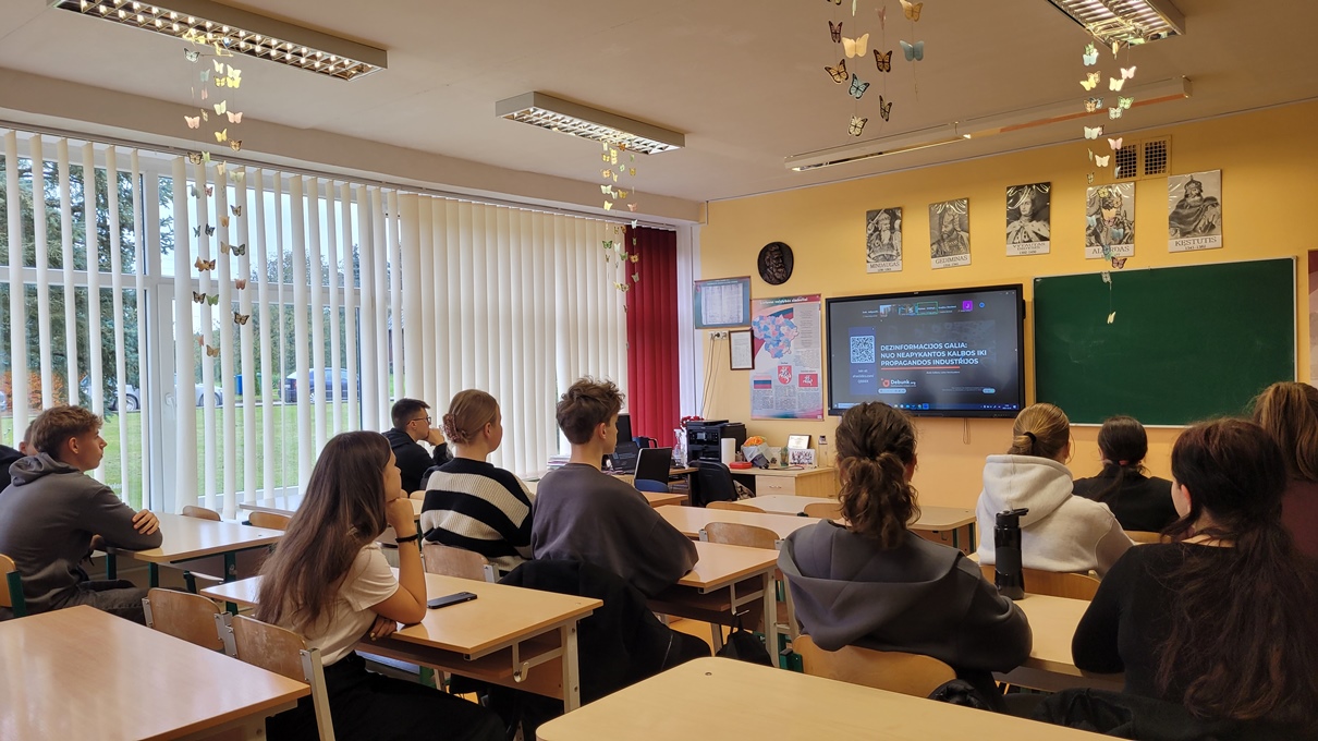 Spalio 24 d. gimnazijos atstovai kartu su kitų MEPA mokyklų mokiniais dalyvavo interaktyviose dirbtuvėse apie dezinformaciją. Renginio metu jie klausė paskaitos, gilino žinias apie melagingos informacijos atpažinimą bei dalyvavo viktorinoje.